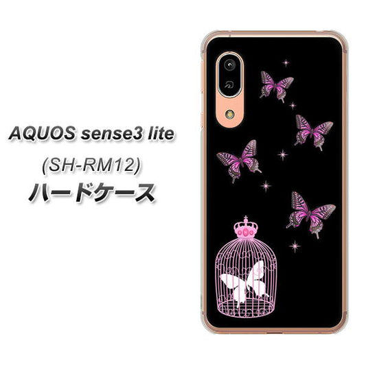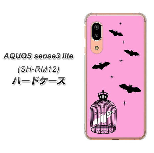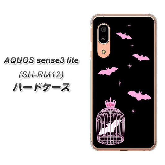 アクオス センス3 ライト SH-RM12 高画質仕上げ 背面印刷 ハードケース【AG809 こうもりの王冠鳥かご(黒×ピンク)】