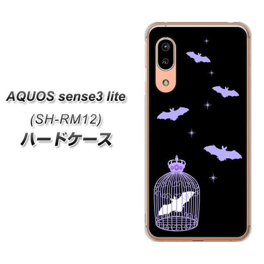 アクオス センス3 ライト SH-RM12 高画質仕上げ 背面印刷 ハードケース【AG810 こうもりの王冠鳥かご(黒×紫)】