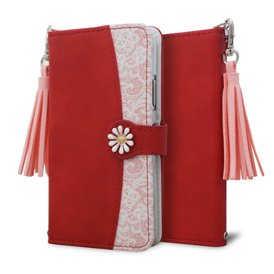 AQUOS zero2 SHV47 au スマホケース 手帳型 フリンジ風 ストラップ付 フラワーデコ