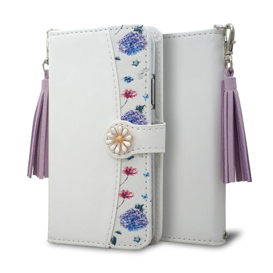 Galaxy A25 5G SC-53F docomo スマホケース 手帳型 フリンジ風 ストラップ付 フラワーデコ