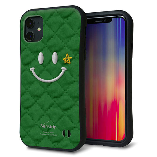 iPhone11 スマホケース 「SEA Grip」 グリップケース Sライン 【KM936 スマイル スター グリーン 】 UV印刷