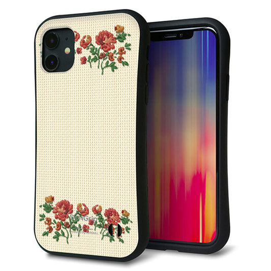iPhone11 スマホケース 「SEA Grip」 グリップケース Sライン 【KM941 花刺繍風 レッドフラワー オフホワイト 】 UV印刷