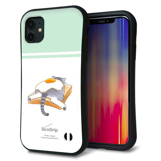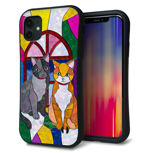iPhone11 スマホケース 「SEA Grip」 グリップケース Sライン 【MA995 ステンドグラス ネコ】 UV印刷