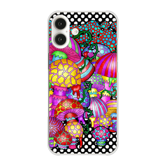 iPhone16 Plus 高画質仕上げ 背面印刷 ハードケースむかいあぐる きのこ