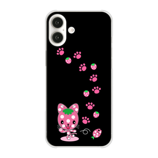 iPhone16 Plus 高画質仕上げ 背面印刷 ハードケースむかいあぐる イチゴ猫のにゃんベリー