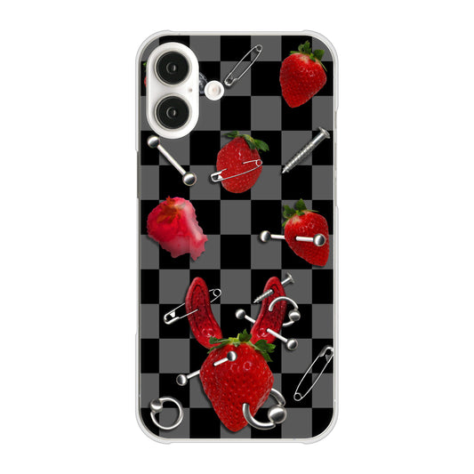 iPhone16 Plus 高画質仕上げ 背面印刷 ハードケースむかいあぐる 苺パンク