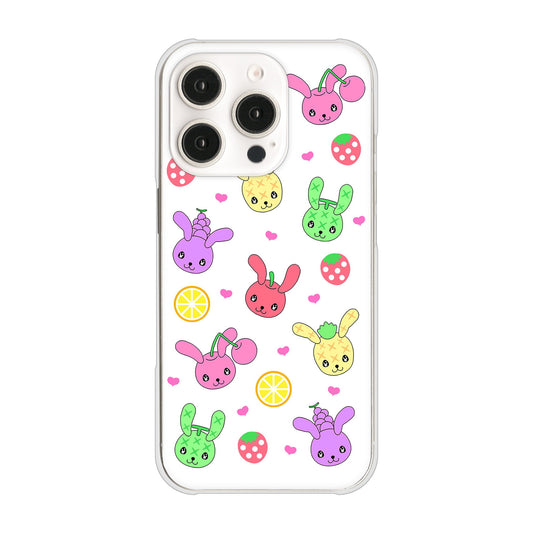 iPhone16 Pro 高画質仕上げ 背面印刷 ハードケースむかいあぐる フルーツうさぎのブルーラビッツ