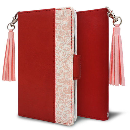 OPPO A5 5G OPG06 au スマホケース 手帳型 フリンジ風 ストラップ付 フラワーデコ