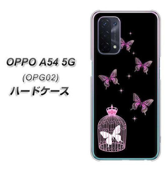 au オッポ A54 5G OPG02 高画質仕上げ 背面印刷 ハードケース【AG809 こうもりの王冠鳥かご(黒×ピンク)】
