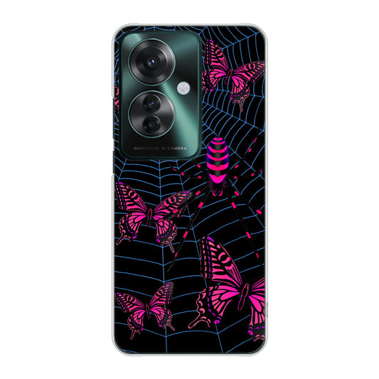 OPPO Reno11 A A401OP Y!mobile 高画質仕上げ 背面印刷 ハードケースむかいあぐる 蜘蛛の巣に舞う蝶