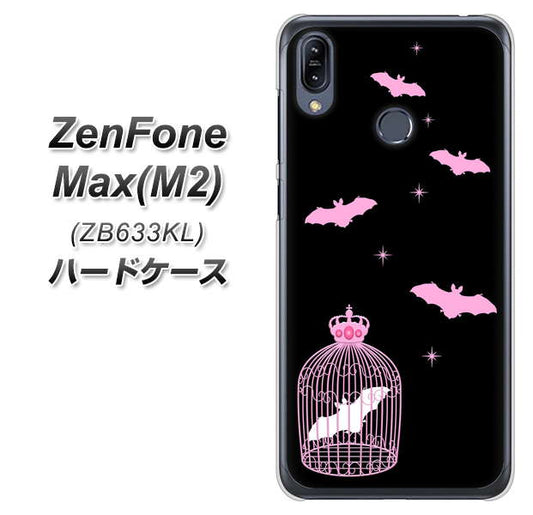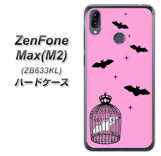 ZenFone(ゼンフォン)Max(M2) ZB633KL 高画質仕上げ 背面印刷 ハードケース【AG809 こうもりの王冠鳥かご(黒×ピンク)】