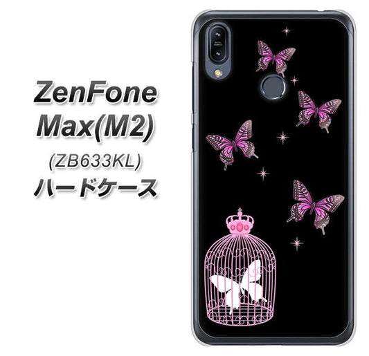 ZenFone(ゼンフォン)Max(M2) ZB633KL 高画質仕上げ 背面印刷 ハードケース【AG811 蝶の王冠鳥かご(黒×ピンク)】