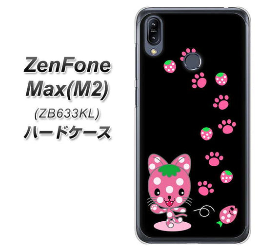 ZenFone(ゼンフォン)Max(M2) ZB633KL 高画質仕上げ 背面印刷 ハードケース【AG820 イチゴ猫のにゃんベリー(黒)】