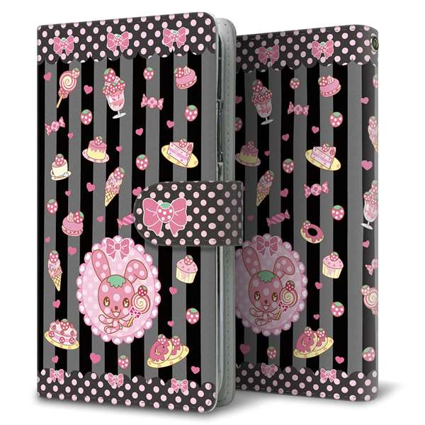 SoftBank アクオス Xx3 506SH 高画質仕上げ プリント手帳型ケース(通常型)【AG864 イチゴウサギ(ラビベリー)の水玉スイーツ ブラック】