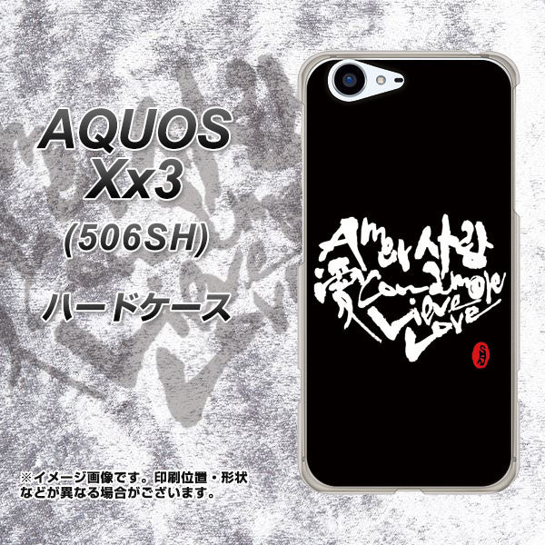 SoftBank アクオス Xx3 506SH 高画質仕上げ 背面印刷 ハードケース【OE802 世界の言葉で「愛(ブラック)」のデザイン筆文字(書道家作品)】