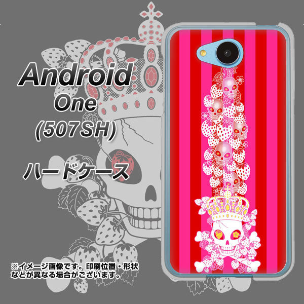 Y!mobile アンドロイドワン 507SH 高画質仕上げ 背面印刷 ハードケース【AG803 苺骸骨王冠蔦(ピンク)】