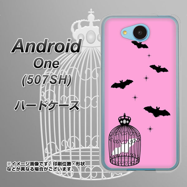 Y!mobile アンドロイドワン 507SH 高画質仕上げ 背面印刷 ハードケース【AG808 こうもりの王冠鳥かご(ピンク×黒)】