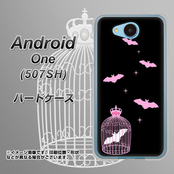 Y!mobile アンドロイドワン 507SH 高画質仕上げ 背面印刷 ハードケース【AG809 こうもりの王冠鳥かご(黒×ピンク)】