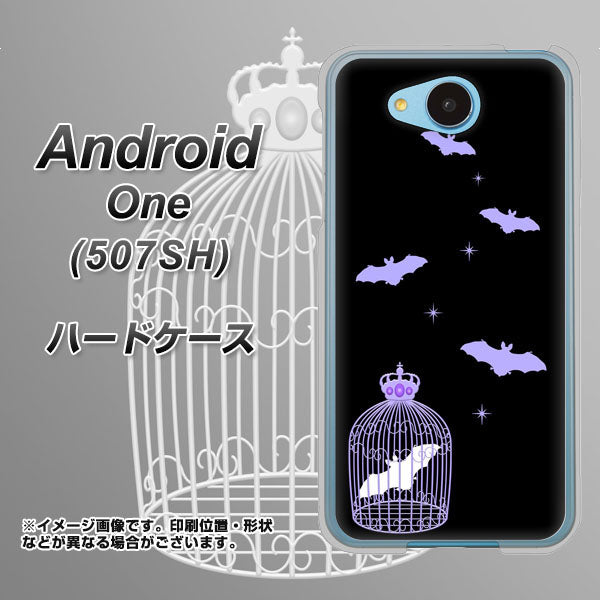 Y!mobile アンドロイドワン 507SH 高画質仕上げ 背面印刷 ハードケース【AG810 こうもりの王冠鳥かご(黒×紫)】