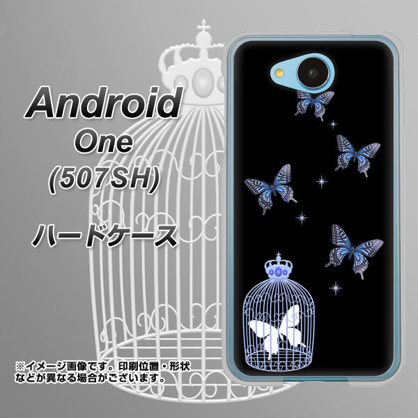 Y!mobile アンドロイドワン 507SH 高画質仕上げ 背面印刷 ハードケース【AG812 蝶の王冠鳥かご(黒×青)】