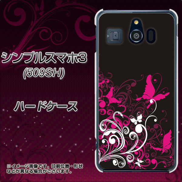 Softbank シンプルスマホ3 509SH 高画質仕上げ 背面印刷 ハードケース【585 闇に舞う蝶】
