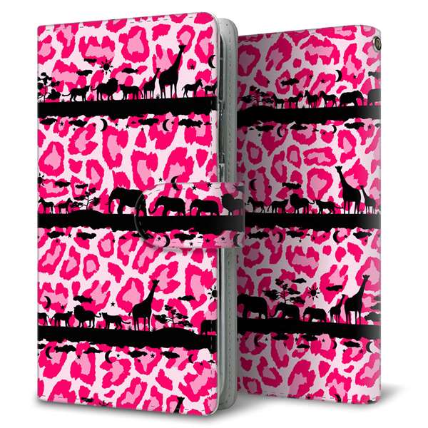 softbank エクスペリアXZ 601SO 高画質仕上げ プリント手帳型ケース(通常型)【AG875 サバンナアニマルヒョウ柄(ピンク×黒)】