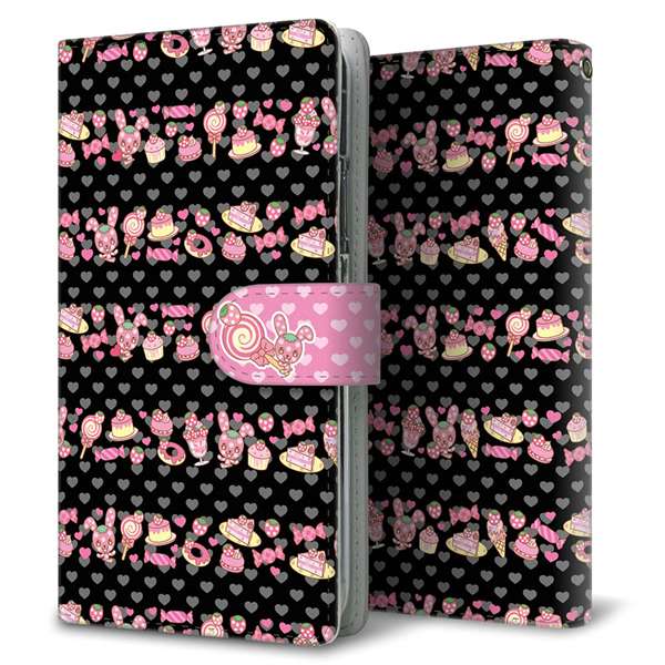 SoftBank アクオス Xx3 mini 603SH 高画質仕上げ プリント手帳型ケース(通常型)【AG860 イチゴウサギ(ラビベリー)のボーダースイーツ ブラック】