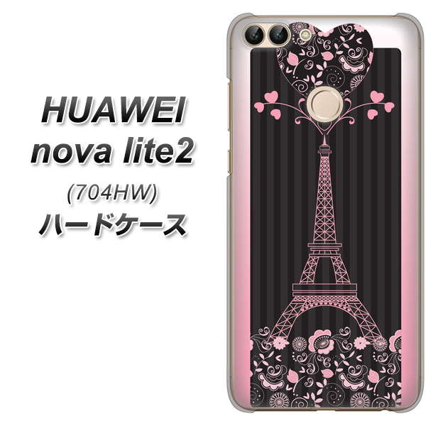 SoftBank HUAWEI nova lite 2 704HW 高画質仕上げ 背面印刷 ハードケース【469 ピンクのエッフェル塔】