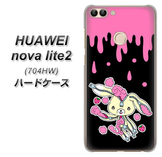 SoftBank HUAWEI nova lite 2 704HW 高画質仕上げ 背面印刷 ハードケース【AG814 ジッパーうさぎのジッピョン(黒×ピンク)】