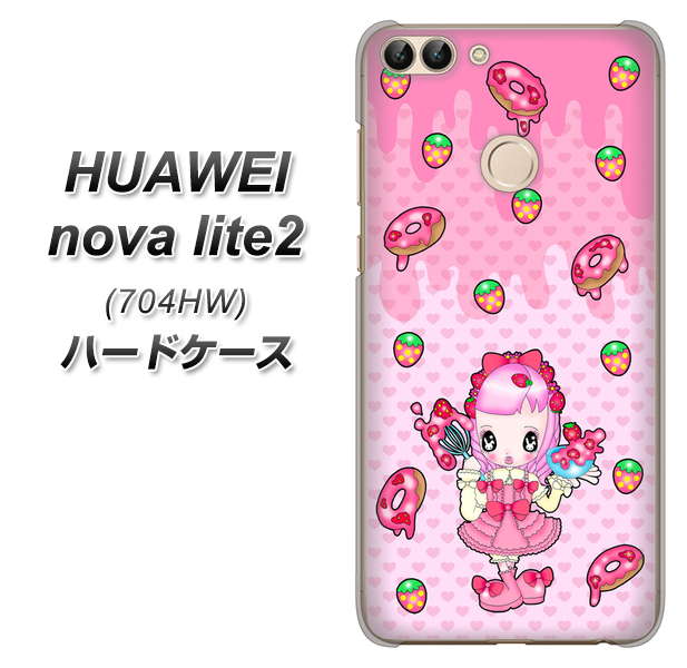 SoftBank HUAWEI nova lite 2 704HW 高画質仕上げ 背面印刷 ハードケース【AG816 ストロベリードーナツ(水玉ピンク)】