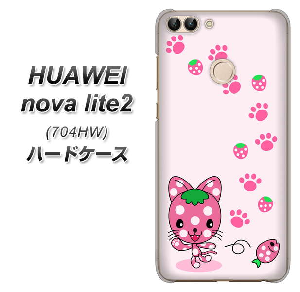 SoftBank HUAWEI nova lite 2 704HW 高画質仕上げ 背面印刷 ハードケース【AG819 イチゴ猫のにゃんベリー(ピンク)】