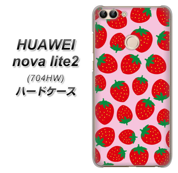 SoftBank HUAWEI nova lite 2 704HW 高画質仕上げ 背面印刷 ハードケース【SC813 小さいイチゴ模様 レッドとピンク】