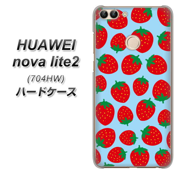 SoftBank HUAWEI nova lite 2 704HW 高画質仕上げ 背面印刷 ハードケース【SC814 小さいイチゴ模様 レッドとブルー】