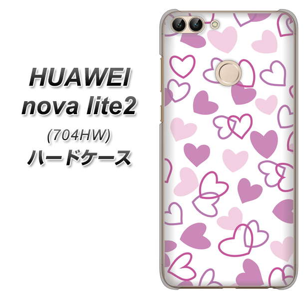 SoftBank HUAWEI nova lite 2 704HW 高画質仕上げ 背面印刷 ハードケース【VA928 ハートがいっぱい パープル】