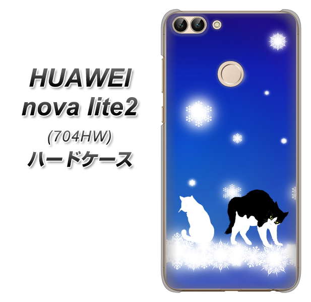 SoftBank HUAWEI nova lite 2 704HW 高画質仕上げ 背面印刷 ハードケース【YJ335 雪の結晶 はちわれ】