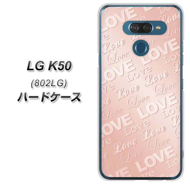 softbank LG K50 802LG 高画質仕上げ 背面印刷 ハードケース【SC841 エンボス風LOVEリンク(ローズピンク)】
