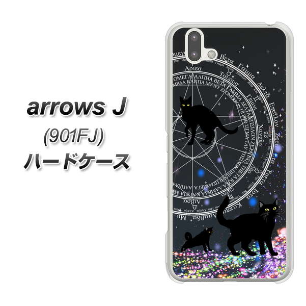 アローズ J 901FJ 高画質仕上げ 背面印刷 ハードケース【YJ330 魔法陣猫 キラキラ 黒猫】