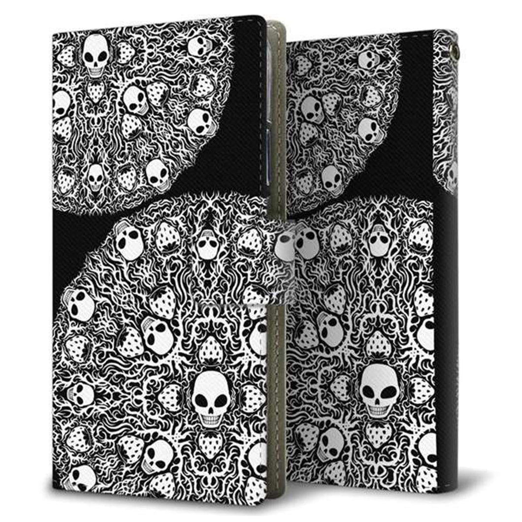 SoftBank アクオスセンス3 プラス 901SH 画質仕上げ プリント手帳型ケース(薄型スリム)【AG834 苺骸骨曼荼羅(黒)】