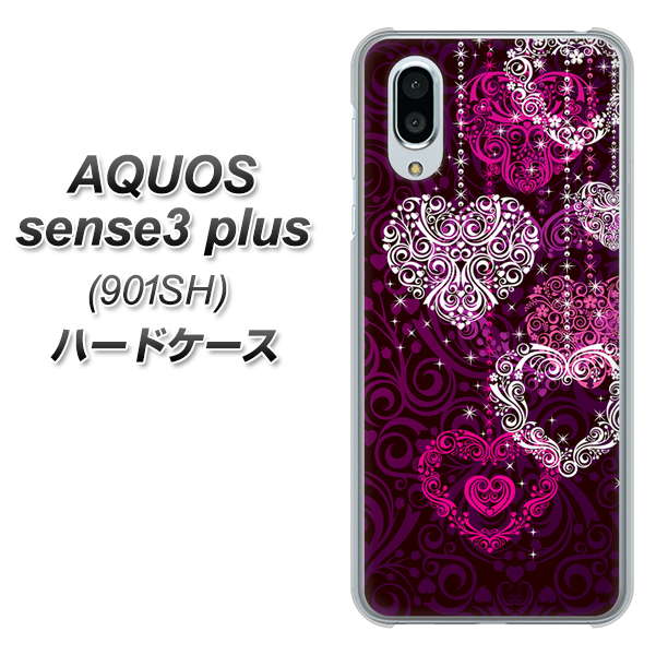 SoftBank アクオスセンス3 プラス 901SH 高画質仕上げ 背面印刷 ハードケース【468 ハートのシャンデリア】