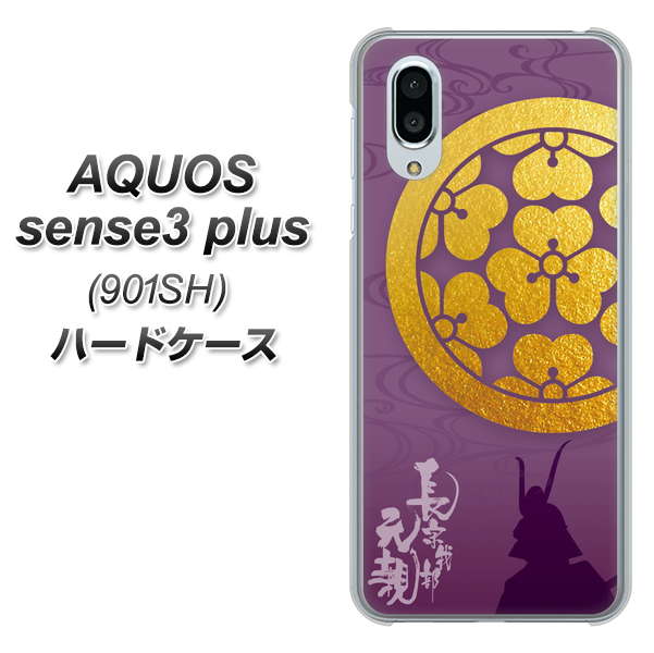 SoftBank アクオスセンス3 プラス 901SH 高画質仕上げ 背面印刷 ハードケース【AB800 長宗我部元親 シルエットと家紋】