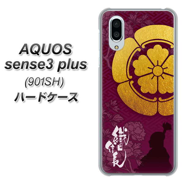 SoftBank アクオスセンス3 プラス 901SH 高画質仕上げ 背面印刷 ハードケース【AB803 織田信長 シルエットと家紋】