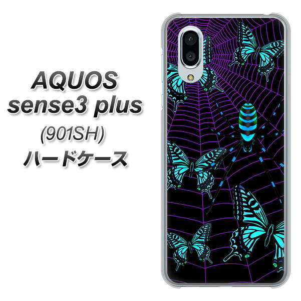 SoftBank アクオスセンス3 プラス 901SH 高画質仕上げ 背面印刷 ハードケース【AG830 蜘蛛の巣に舞う蝶(青)】