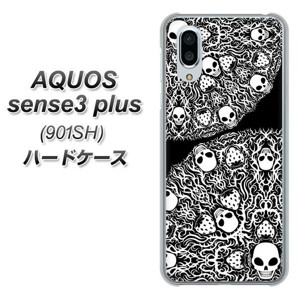 SoftBank アクオスセンス3 プラス 901SH 高画質仕上げ 背面印刷 ハードケース【AG834 苺骸骨曼荼羅(黒)】
