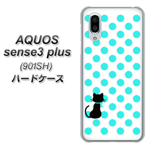 SoftBank アクオスセンス3 プラス 901SH 高画質仕上げ 背面印刷 ハードケース【EK809 ネコとシンプル ライトブルー】