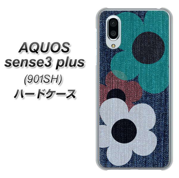 SoftBank アクオスセンス3 プラス 901SH 高画質仕上げ 背面印刷 ハードケース【EK869 ルーズフラワーinデニム風】