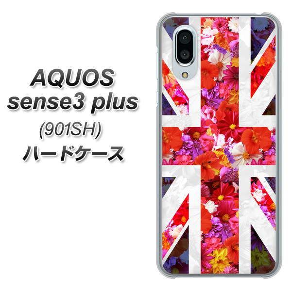 SoftBank アクオスセンス3 プラス 901SH 高画質仕上げ 背面印刷 ハードケース【SC801 ユニオンジャック リアルフラワー】