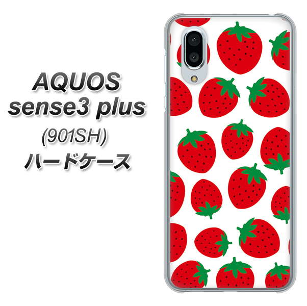 SoftBank アクオスセンス3 プラス 901SH 高画質仕上げ 背面印刷 ハードケース【SC811 小さいイチゴ模様 レッド】