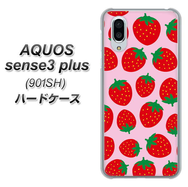 SoftBank アクオスセンス3 プラス 901SH 高画質仕上げ 背面印刷 ハードケース【SC813 小さいイチゴ模様 レッドとピンク】
