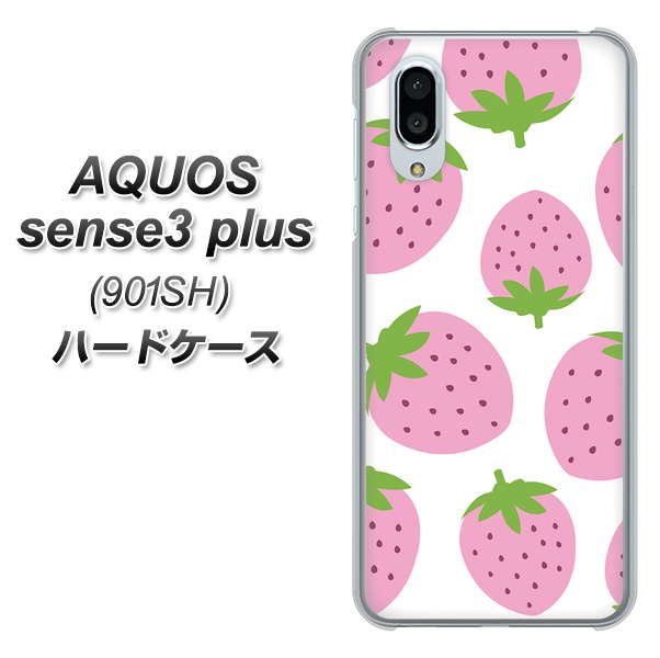 SoftBank アクオスセンス3 プラス 901SH 高画質仕上げ 背面印刷 ハードケース【SC816 大きいイチゴ模様 ピンク】