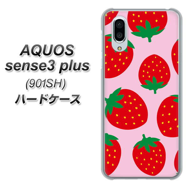 SoftBank アクオスセンス3 プラス 901SH 高画質仕上げ 背面印刷 ハードケース【SC820 大きいイチゴ模様レッドとピンク】